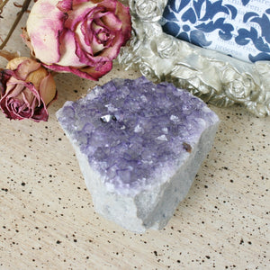 This wonderful specimen is a naturally formed purple Fluorite cube crystals growing on Limonite with Sphalerite. There is a well formed little Sphalerite crystal growing in a sea of Fluorite. Crystals from this location often are snuck out of the mines by the miners. As these are a secondary find to the main mining operation, the specimens from Elmwood are sadly destroyed during the mining operation. We consider these specimens "rock rescues". The Fluorite specimens have been difficult to find in recent years, but a small collection has been released recently, and we are thrilled to offer some of these coveted specimens. We hope you enjoy them as much as we do. This piece can be enjoyed for its beauty or used in any healing modality. Location: Elmwood Mine, Smith County, Carthage, TN. Dimensions: 3.11"x2.42"x1.66", weight: 204.7 grams. SKU: 20C9