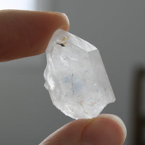This is a Papagoite included in Quartz specimen. Papagoite is a super rare mineral that used to come out of S. Africa, however it has been many years since the mine has produced. It was originally found in 1960's in Ajo, Arizona.  It tends to be royal blue in color. It is often found growing with Ajoite which is more of a turquoise colored mineral that also grows in Quartz.  Papagoite is the rarer of the two minerals. This piece can be used in any healing modality, set in jewelry or enjoyed for its beauty.  Location: Messina Mining District, South Africa Dimensions: 1.08"x.70"x0.47", weight: 7.4gm. SKU: 16S685