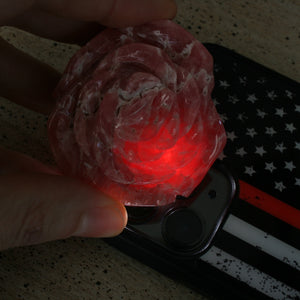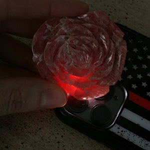 This beauty is a hand carved Rhodochrosite rose carving. The color of the Rhodochrosite shows best in indoor lighting or warm lighting. This piece is a one of a kind. You can see the small vugs in this carving which are natural to this mineral. It can be used to display in your home or an office. For those who love unique carvings, this is a special one! Truly spectacular! This rose also semi translucent, meaning it allows light to travel through it, which makes the rose glow slightly. This carving can also be used in any healing modality. Location: Capilitas, Argentina. Dimensions: 1.99"x1.90"x0.93". Weight: 82.3 grams. SKU: 20J401