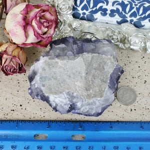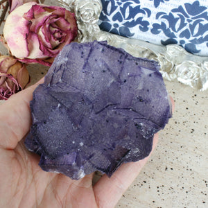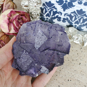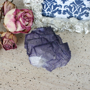 This wonderful specimen is a naturally formed purple Fluorite cube crystal growing on Limonite. It is spectacular! Crystals from this location often are snuck out of the mines by the miners. As these are a secondary find to the main mining operation, the specimens from Elmwood are sadly destroyed during the mining operation. We consider these specimens "rock rescues". The Fluorite specimens have been difficult to find in recent years, but a small collection has been released recently, and we are thrilled to offer some of these coveted specimens. We hope you enjoy them as much as we do. This piece can be enjoyed for its beauty or used in any healing modality. Location: Gordonsville Mine, Smith County, Carthage, TN. Dimensions: 3.15"x2.62"x2.04", weight: 274.2 grams. SKU: 20C5