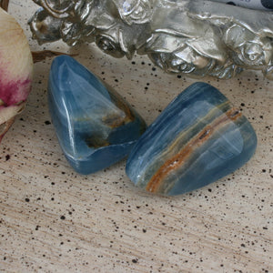 You will receive this set of 2 Blue Calcite Tumbled Stone. These 2 have beautiful blue banding and coloring. These can be enjoyed in your home or office, used in grid work or any healing modality. They make great pocket buddies. As Calcite is softer, we suggest carrying them with not other rocks or crystals.