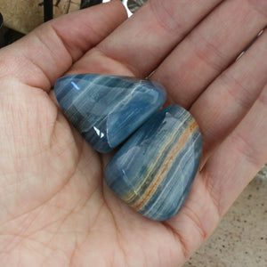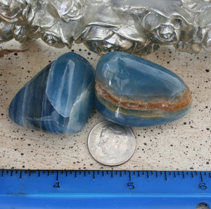 Set of 2 Blue Calcite / Blue Onyx Tumbled Stone from Argentina, also called Lemurian Aquatine Calcite, TUM19