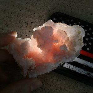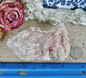 This wonderful and rare specimen is a Botryoidal Pink Opal. It is pretty unusual for opal to crystallize in formations like this. Some sections even display a slight pearl like luster. This is a special crystal with a lovely baby pink and white hue. We have never seen specimens like these in our 26 years of business. A true gem for your collection. These can be used in any healing modality. Location: Peru. Dimensions: 3.04"x2.00"x1.06". Weight: 51.9grams. SKU: 21F82.