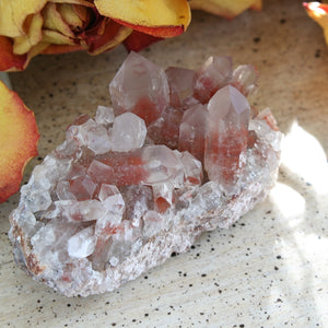 This lovely Orange River Quartz specimen displays well formed phantoms of Hematite growing inside the quartz. During the growth process, other trace elements, such as Hematite started to grow over the Quartz leaving a "phantom". It becomes frozen in time when the Quartz continues grows over the added element, leaving eye catching designs. A rare and unusual piece for any collection, especially from this location.