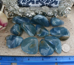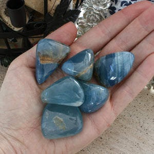 You will receive ONE Blue Calcite Tumbled Stone. These 11 have beautiful blue coloring. They allow light to come through when held up to the light as you can see in the last two pictures. These can be enjoyed in your home or office, used in grid work or any healing modality. They make great pocket buddies. As Calcite is softer, we suggest carrying them with not other rocks or crystals.