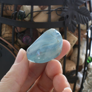 Blue Calcite / Blue Onyx Tumbled Stone from Argentina, also called Lemurian Aquatine Calcite, TUM9