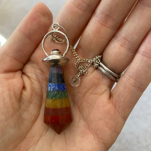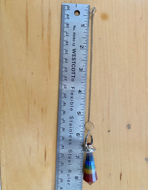 Chakra Pendulum with Silver Chain. If you are not familiar with Pendulums or how to work with them, we sell a wonderful book: https://www.handsofspirit.com/collections/books/products/sku16592