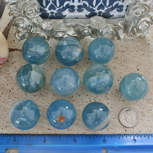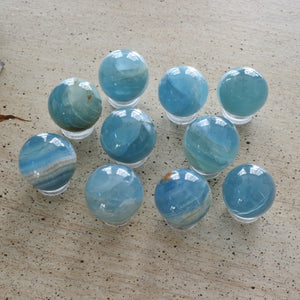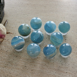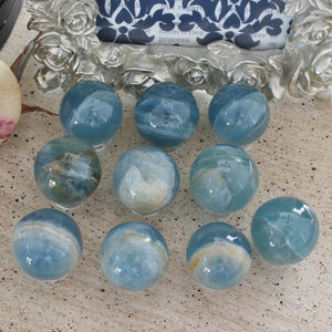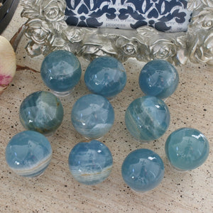 You will receive ONE Blue Calcite Sphere. These 10 have lovely colors and some with banding . When put them in the light, they illuminate and glow slightly as you can seen in the first 2 pictures. These can be enjoyed in your home or office, used in grid work or any healing modality.