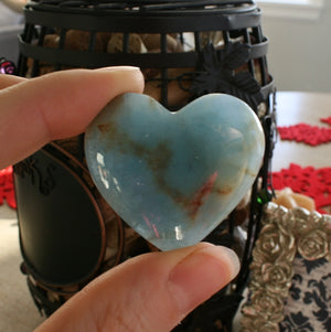 Blue Calcite / Blue Onyx Heart from Argentina, also called Lemurian Aquatine Calcite, LGH1