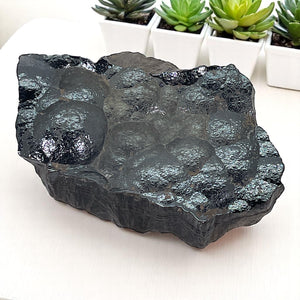 Embrace the energetic power of this stunning Hematite crystal specimen, renowned for its striking black color and unique botryoidal formation. This captivating piece is a must-have for any collector seeking transformation and grounding in their crystal collection.
