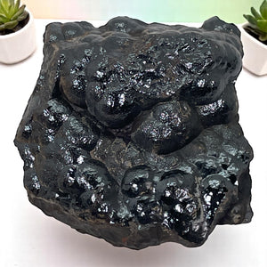 Discover the captivating allure of our Hematite crystal specimen, showcasing its distinctive botryoidal formation. This striking black crystal is not only a visual delight but also a unique addition to any collection.