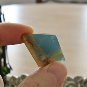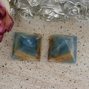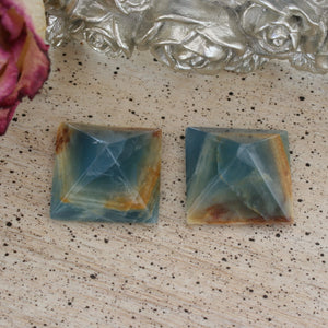 You will receive ONE Blue Calcite Pyramid. These two have a brown vein running between the blue, which adds a lovely contrast. The pyramids glow slightly when held up to the light as you can see an example of in the last picture. These can be enjoyed in your home or office, used in grid work or any healing modality.