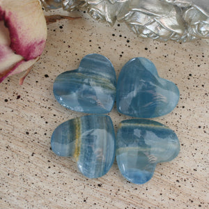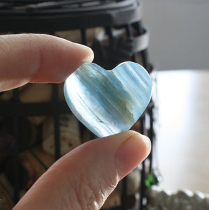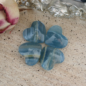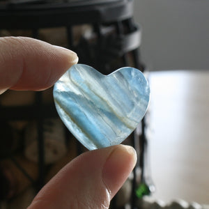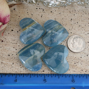 You will receive ONE Blue Calcite heart. As you hold them up to the light, they glow as the light illuminates them. See the last 2 pictures for an example. These are such beautiful gems! They have fantastic polish and can be used to make jewelry or in any healing modality. They can also be carried as a pocket buddy! Location: Argentina. Dimensions: See picture with ruler and dime. Sku: HT2