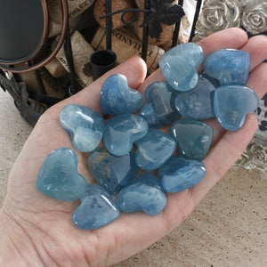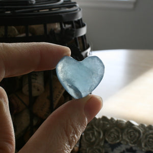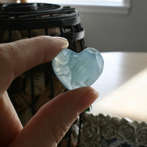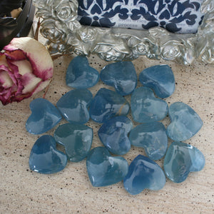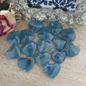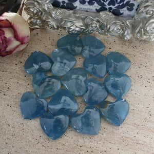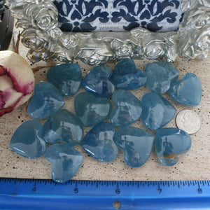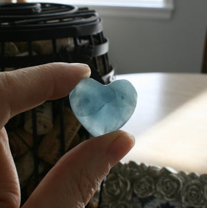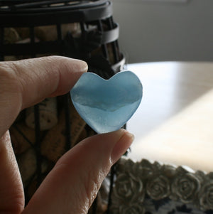 You will receive ONE Blue Calcite heart. As you hold them up to the light, they glow as the light illuminates them. See the first picture and last 4 pictures for an example. These are such beautiful gems! They have fantastic polish and can be used to make jewelry or in any healing modality. They can also be carried as a pocket buddy! Location: Argentina. Dimensions: See picture with ruler and dime. Sku: HT3