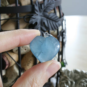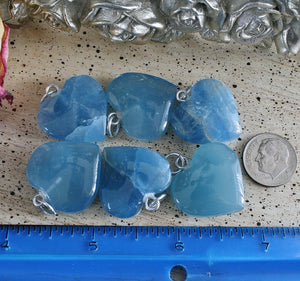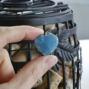 You will receive ONE Blue Calcite heart pendant. As you hold them up to the light, they glow as the light illuminates them. See the last 2 pictures for an example. These are such beautiful gems! Chains are not included with this pendant, but each pendant should fit on standard chains or a cord. Location: Argentina. Dimensions: See picture with ruler and dime. Sku: 20J617