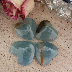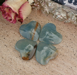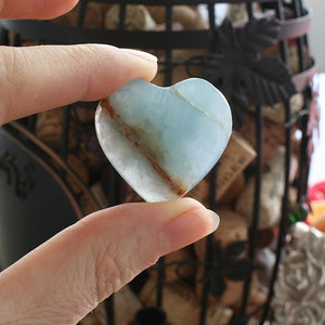 Blue Calcite Heart from Argentina, also called Blue Onyx or Lemurian Aquatine Calcite, MEDH2