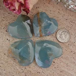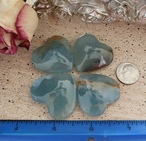 You will receive ONE Blue Calcite heart. As you hold them up to the light, they glow as the light illuminates them. See the last 2 pictures for an example. These are such beautiful gem! They have fantastic polish and can be used to make jewelry or in any healing modality. They can also be carried as a pocket buddy! Location: Argentina. Dimensions: See picture with ruler and dime. Sku: MEDH2