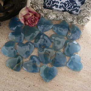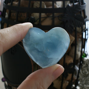 Blue Calcite Heart from Argentina, also called Blue Onyx or Lemurian Aquatine Calcite, LGH2