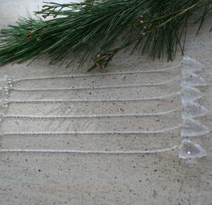 You will receive ONE Sri Yantra Pendulum. These pendulums are polished from clear Quartz. They are 3-D carved Sri Yantras. A Sri Yantra is a mystical diagram used in Hindu Tantra. This pyramid makes a lovely display piece or works for many modalities of healing work.