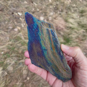 Admire the mesmerizing play of colors in this rough Rainbow Hematite. Its natural iridescence transforms any collection into a kaleidoscope of shimmering beauty. These pieces are from old stock material as Rainbow Hematite has been mined out for some time now. The videos and pictures don't do these justice. They show much better in person.
