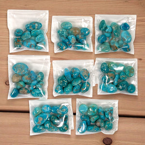 Embrace the invigorating hue of tumbled Turquoise, a gemstone that radiates calming energy with its vibrant turquoise color.