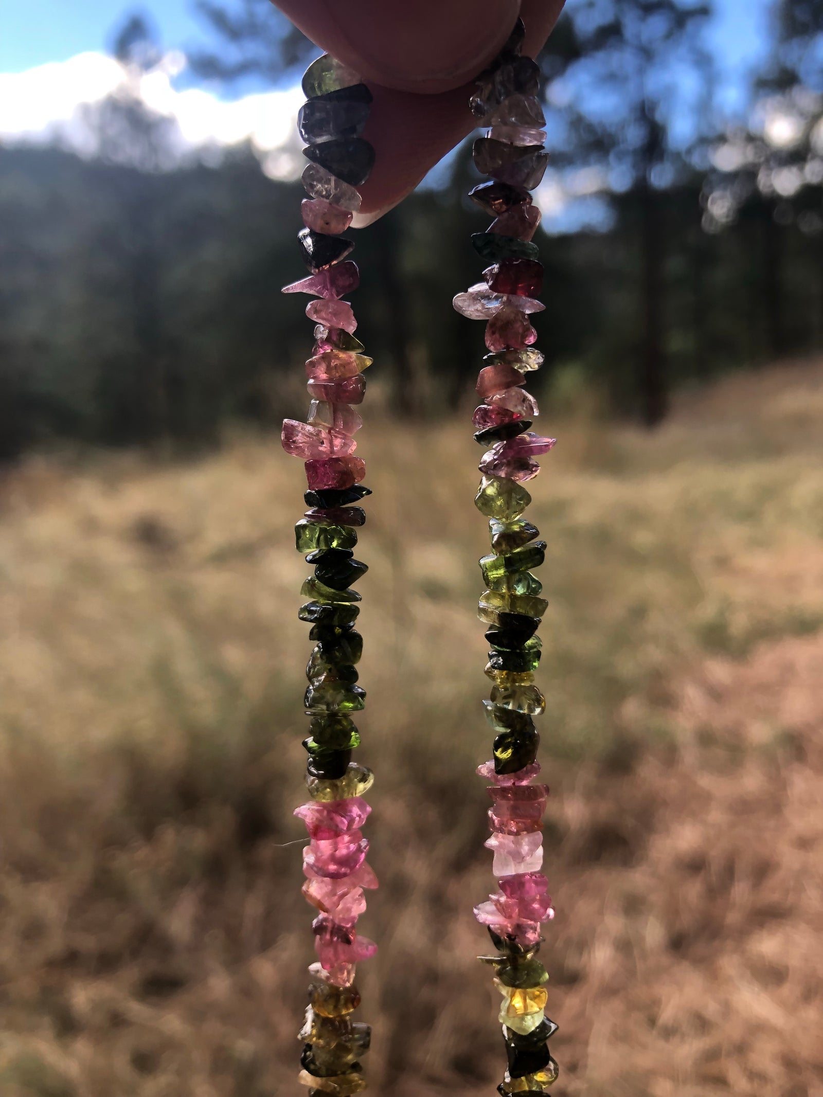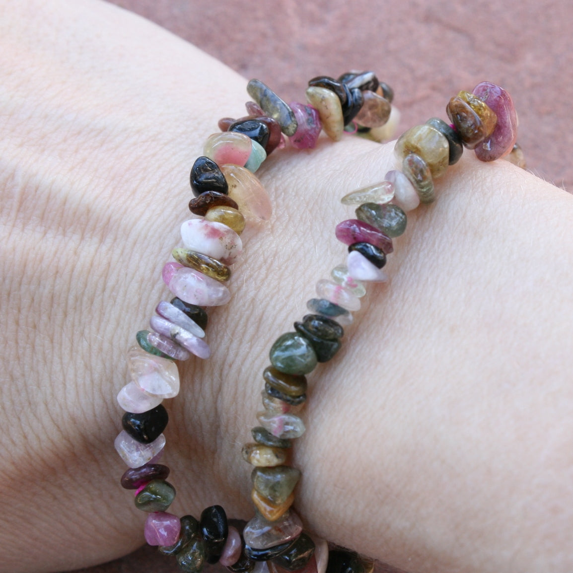 Tourmaline clears, maintains, and stimulates all the chakras. It balances male/female energies, the mind, chakras, and auric field. The striations present in tourmaline allow it to channel and direct energy. It encourages inspiration and self-confidence. It diminishes fear by promoting understanding, and balances the left and right sides of the brain.